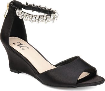 Step into a sparkling look with the Connor wedge by Journee Collection. This wedge has a beautiful shimmery material, open toe, and a jeweled ankle strap. You'll be stunning in your new heels, and these wedges are the perfect height.
