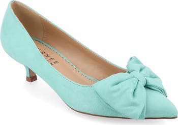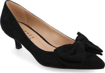 Live it up in the Orana heel by Journee Collection. This adorable kitten heel is made of faux suede material and has a beautiful pointed toe. The large accent bow finishes off the clean look. Sizing: This style fits true to size. M=standard width.
