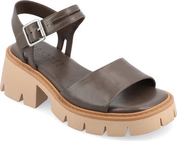 Reach new heights in this platform sandal crafted from faux leather with a lug heel.
