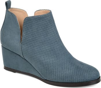 Trendy and Chic are the Mylee bootie by Journee Collection. This stylish bootie features a soft faux suede material with a perforated detail on the top. The deep V cut-outs make for easy pull-on entry while the slight wedge adds attractive height.