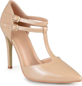 Show off stunning style in shiny t-strap pumps by Journee Collection. These sleek cut-out pumps feature premium faux leather uppers with a lustrous patent finish and a modern double t-strap design.