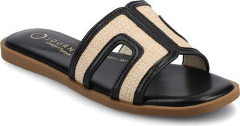A warm day spent by the water is incomplete without this charming slide sandal made modern by a squared toe.