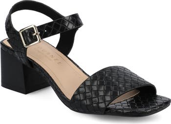 A weave texture covers a blocky-heeled sandal designed with the brand's comfort technology to make it an instant go-to for day-to-night outings.