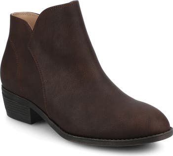 Perched on a stacked block heel, a streamlined ankle boot is styled with tonal stitching for an undeniably chic look.