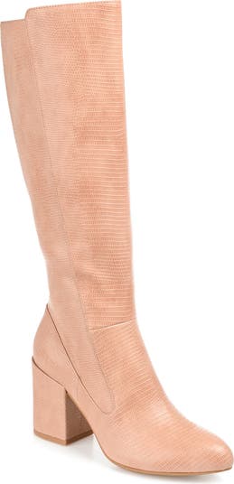 Unique animal embossment adds a refined, luxurious appearance for a tall boot with a side zipper.