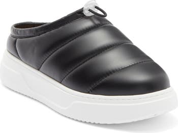 A puffy quilted upper brings statement-making volume to this sneaker-style mule cinched with a drawcord-toggle topline and lifted by a chunky platform.