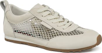 Breathable mesh panels energize this sporty sneaker set of a striped, grippy sole that'll have you speeding off in style.