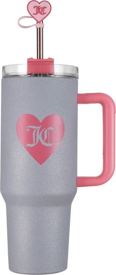 Stay chic and hydrated with this stainless steel water bottle bursting with Juicy charm and designed with a leak-resistant lid, a straw and a heart-shaped cover.