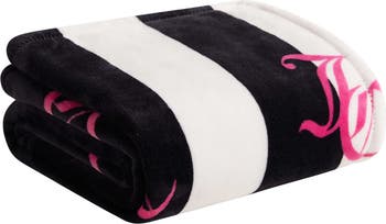 Add a touch of luxury to your cozy corner with this plush throw blanket adorned with iconic Juicy glam.