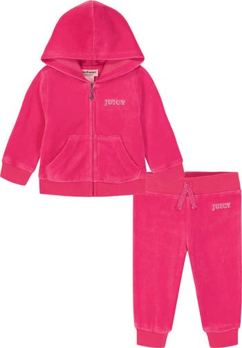 Dress baby in signature Juicy style with this embellished-velour hoodie paired with joggers.