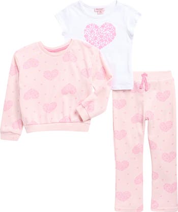 Brimming with Juicy charm, this cotton-blend three-piece set pairs a heart-graphic T-shirt with a coordinating sweatshirt and leggings.