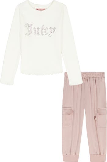 This picture-perfect set for your kiddo features lightweight satin pants and a long-sleeve T-shirt with an iconic crystal-embellished logo.