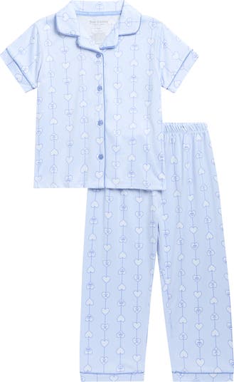 Striped hearts with logo monograms run down these jersey pajamas that'll keep your kiddo comfy at night.