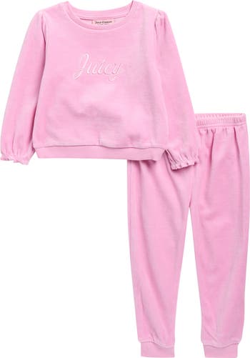 Bring signature Juicy flair to their closet with this pullover and joggers set crafted from soft velour and finished with brand embroidery.