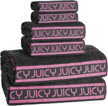 Add a touch of luxury to your bathroom routine with this soft and absorbent towel set styled with iconic Juicy glam.
