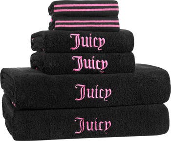 Add a touch of luxury to your bathroom routine with this soft and absorbent towel set styled with iconic Juicy glam.