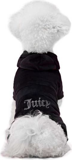 Adorned with the brand's signature name in sparkling bling accents, this luxuriously soft and glamorous velour tracksuit is the perfect cozy outfit for your pooch.