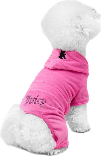 Adorned with the brand's signature name in sparkling bling accents, this luxuriously soft and glamorous velour tracksuit is the perfect cozy outfit for your pooch.