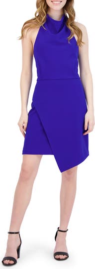 Cowl Neck Asymmetric Hem Sheath Dress