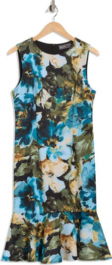 Florals meet finesse in this A-line dress styled with fitted front seams and a wide ruffled hem for a romantic finish.