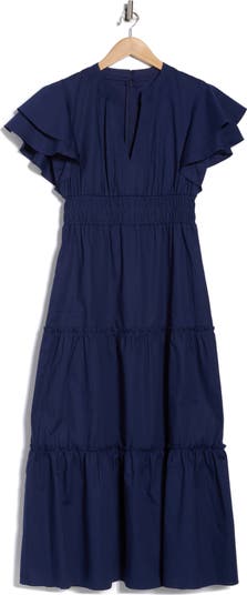 Flutter Sleeve Tiered Midi Dress