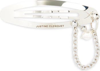 Bring Justine Clenquet's signature eclectic aesthetic to your 'do with this polished barrette embellished with a draped chain, piercings and a single crystal pearl.