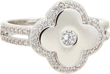 Show off nature-inspired shine with this polished floral ring illuminated by sparkly cubic zirconia.