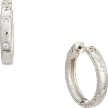 Braided textures and bright-white cubic zirconia distinguish a pair of polished earrings that bring modern style to your hoops collection.