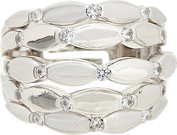 Get a stacked look with this oval-textured multiband ring illuminated by sparkly cubic zirconia.