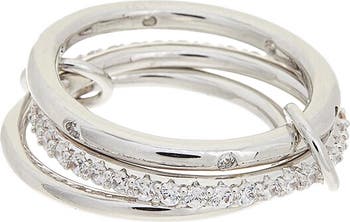 A trio of bands are connected together and sparkle with a row of cubic zirconia on this statement ring.