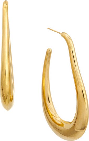 A curved-tubular design brings a contemporary touch to these classic hoops plated in warm goldtone.