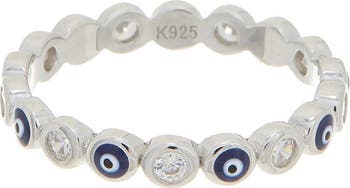 Protect your energy with this statement ring featuring bezel-set cubic zirconia and evil-eye stones.