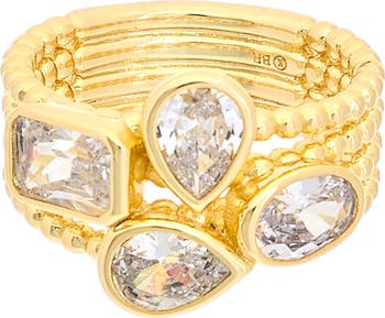 Add glamorous sparkle to your hand with this layered ring featuring mixed-cut cubic zirconia and ball texture.