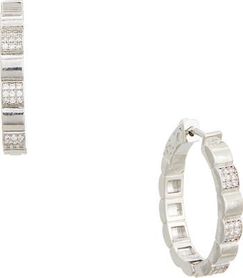 Pavé cubic zirconia sparkle from these scalloped hoop earrings that instantly glam up your night-out looks.
