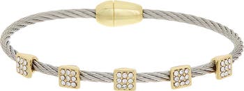 Stack on the shine with this two-tone twisted cable bangle bracelet featuring pavé cubic zirconia stations for added sparkle.
