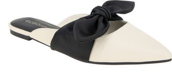 A grosgrain ribbon bow adds dashing detail to the polished silhouette of a pointed-toe mule.