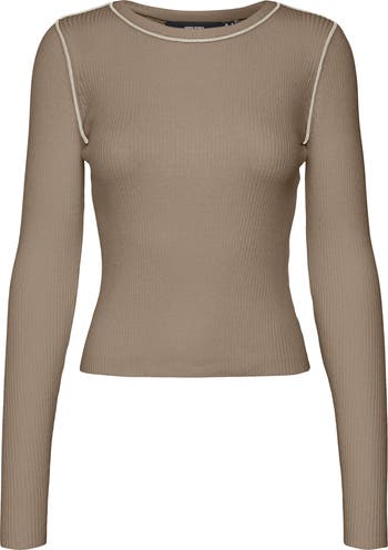 Contrast piping highlights the silhouette of this body-skimming rib knit sweater top.