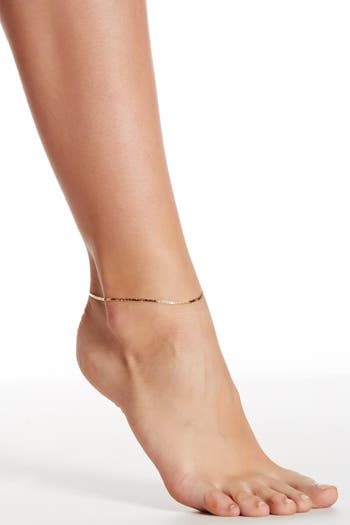 A mariner-chain anklet, crafted in 10-karat gold, gleams in a seamless shine around the ankle and instep.