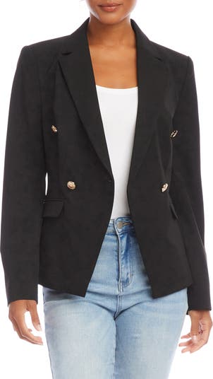 Goldtone hardware adds the perfect flash of glamour to this fresh and fitted double-breasted blazer.