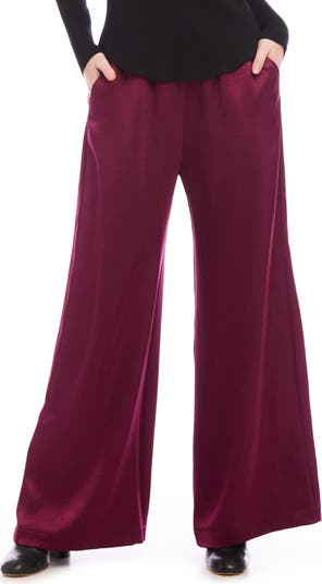 Lustrous satin lends casual elegance to these easy-on pants styled with drapey wide legs.