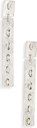 A threaded bar design adds contemporary shine to these statement drop earrings with a brushed finish.