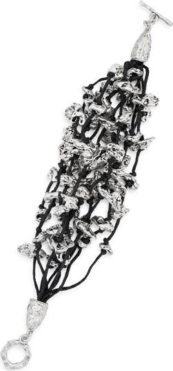 Bring eclectic charm to your wrist stack with a polished bracelet strung with braided rope and free-form beads.