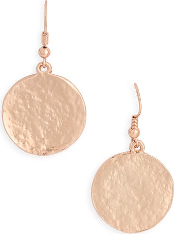 Enrich your look with the rustic appeal of coin drop earrings featured in a hammered texture for a shimmering finish.