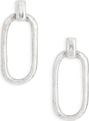 An oval-link design adds contemporary shine to these statement drop earrings with a hammered finish.