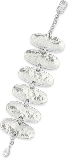 Hammered oval-shaped plates catch light at each and every angle in this bracelet plated in icy silvertone.