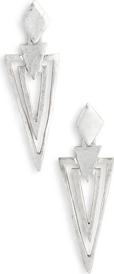 Geometric studs suspend cutout triangles on these swingy drop earrings that bring instant shine to everyday looks.