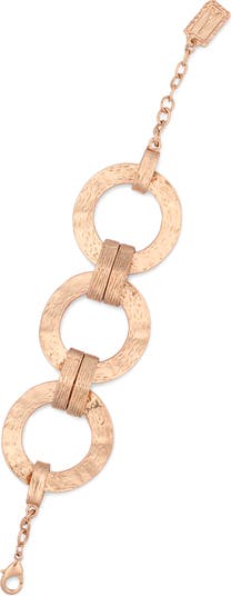 Hammered links catch light at each and every angle in this chain bracelet plated in rose gold.