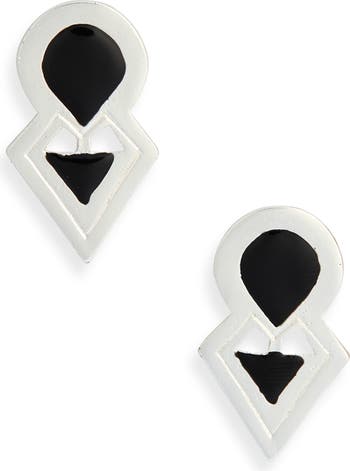 A geometric design with enamel inlay adds contemporary shine to these petite drop earrings.