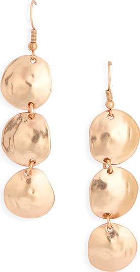 Shell-inspired discs catch the light on these polished linear drop earrings that bring extraordinary shine to everyday looks.