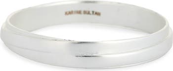 Perfect for wearing solo or stacked with your other jewelry, this bangle bracelet is made from a silvertone plate with a brightly-polished finish.